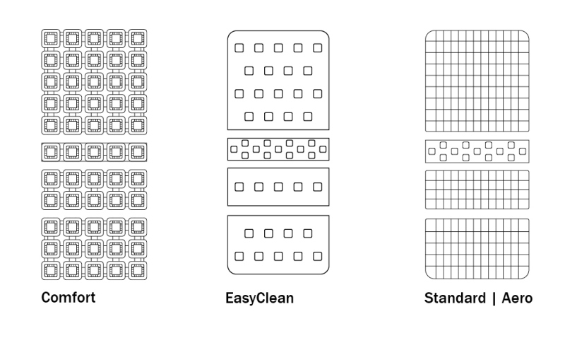 Les éléments du sommier sont faciles à nettoyer et amovibles sur l’ensemble des sommiers.