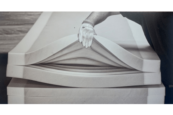 The mattress cover is made of PERLASTIC® Silber cover dark grey with concealed L-zipper and two handles on one side.